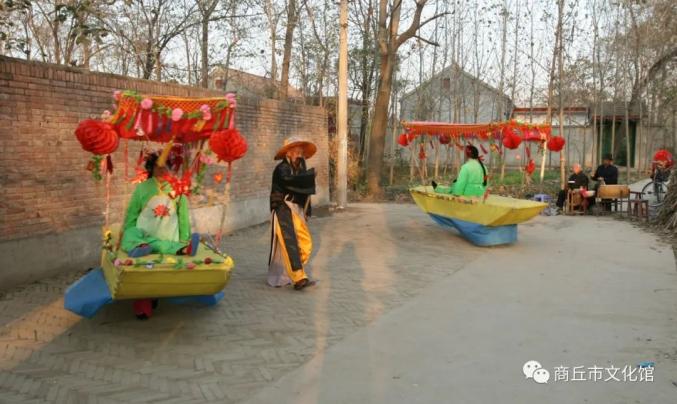 7、旱船舞:旱船舞所表現的主要內容是四對夫妻在農閑時游山玩水走水路的歡樂場面。演員8人、撐船4人(男)、坐船4人(女)。其道具有竹扎旱船4個、船蒿4個。在表演中演員因情節需要相互說唱。主要動作有:順水行舟、逆水行舟、平穩劃、頂風劃、過漩渦等。
