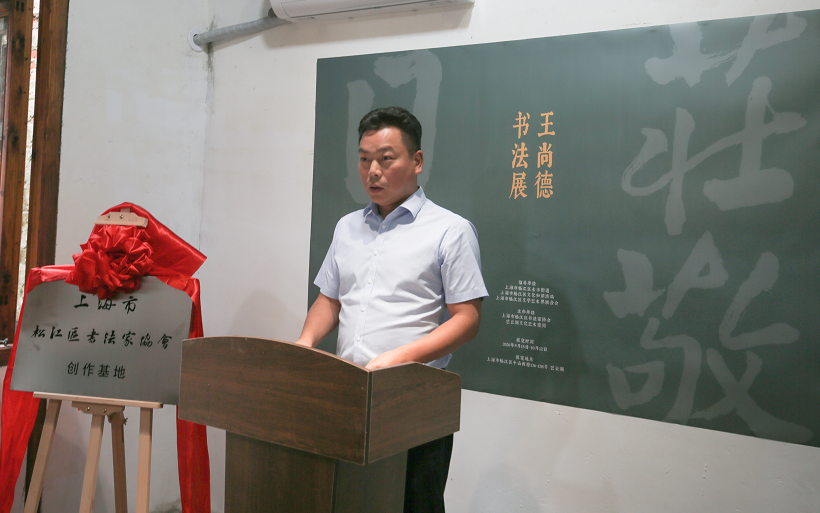最后,松江區(qū)書法家協(xié)會顧問劉兆麟、何磊為“松江書法家協(xié)會創(chuàng)作基地”揭牌。并由松江區(qū)永豐街道辦事處主任何勁峰宣布展覽開幕。