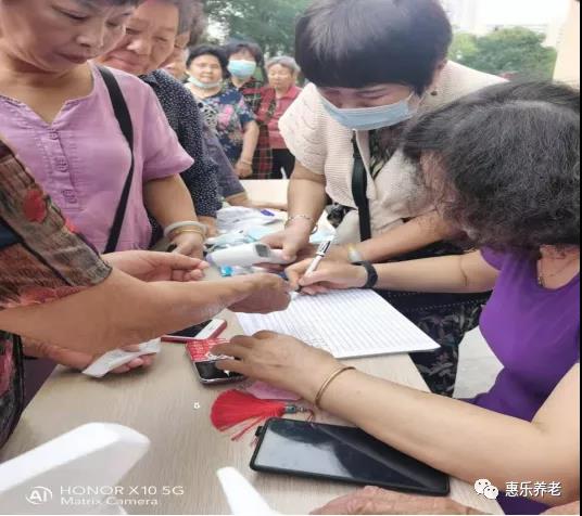 響應國家防疫工作,東方惠樂弘孝養老服務中心志愿者為前來參加活動的每位轄區居民進行登記、測量體溫、并送上愛心口罩。
