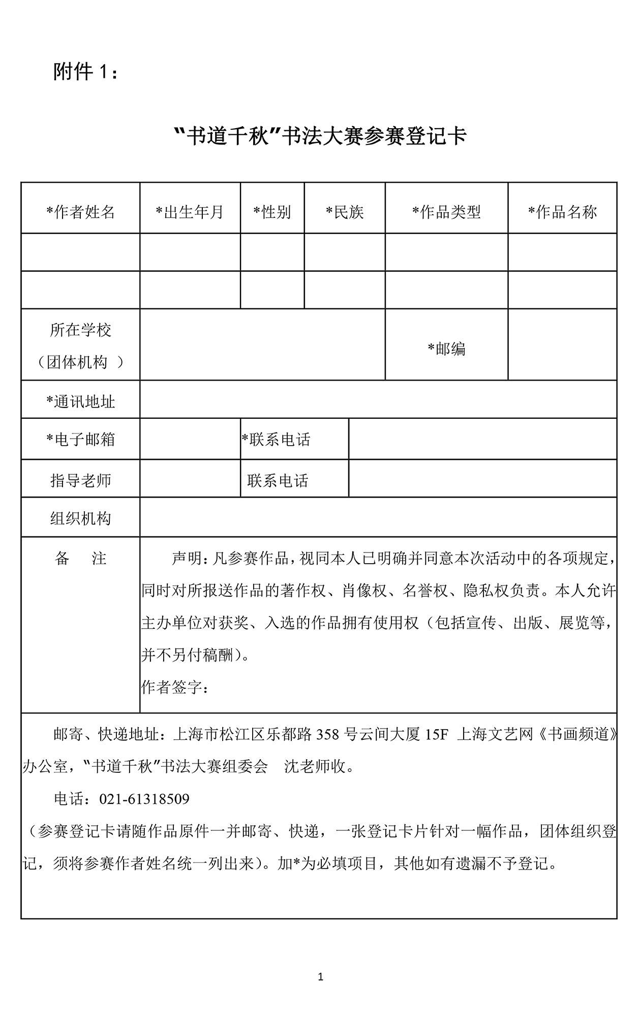 2、所有藝術(shù)家登記姓名必須與身份證姓名相同,禁用筆名。詳細(xì)的聯(lián)系方式(郵編、地址、真實(shí)名、手機(jī)號(hào)、QQ號(hào)等),郵寄快遞或信封上注明“書法大賽字樣”。