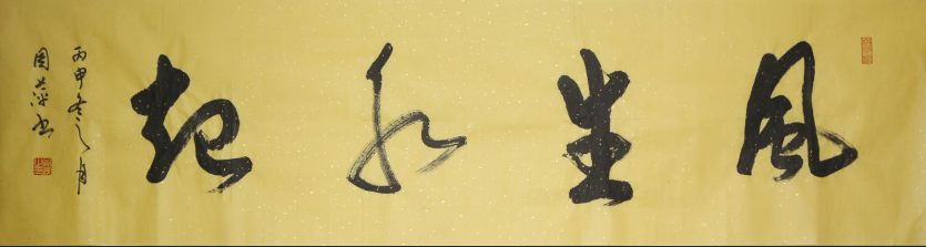 2016年11月12號六尺對開書法“風生水起”書法被格林納達駐聯合國大使劉遲先生收藏。