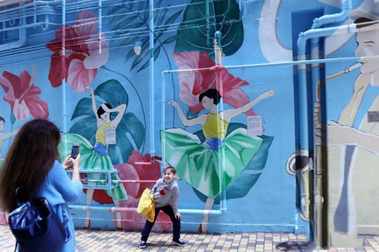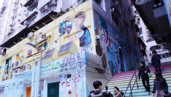 2月24日,香港西營盤忠正街“藝里坊”,以紐約、倫敦、首爾等大都會的壁畫吸引訪客留影。每年的三月,是香港藝術月,世界各地最熱門的藝術展覽齊聚香港,第47屆香港藝術節、巴塞爾藝術展、及街頭藝術節目將精彩紛呈。而在西環的“藝里坊”,鮮艶的涂鴉成為訪港游客的熱門打卡地方。