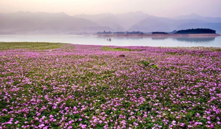 春天的公平湖畔,上千畝野生紫云英,仿佛紫紅色的地毯一樣,鋪展開去,綿延數公里。