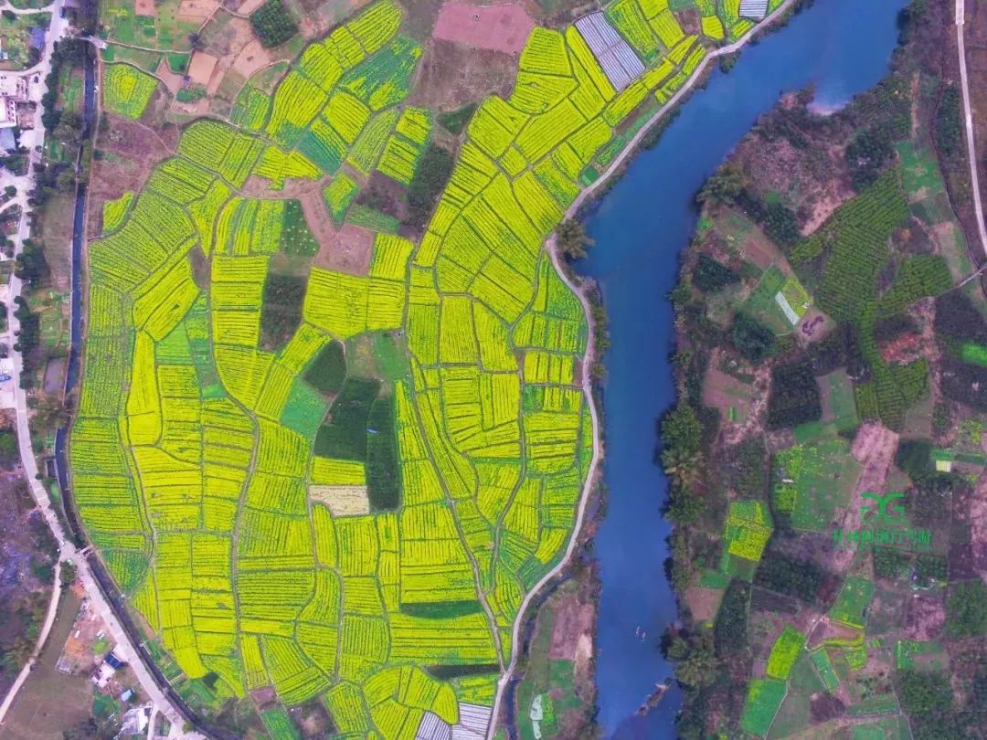 每年3月,遇龍河畔3000畝油菜花便競相綻放,美不勝收。